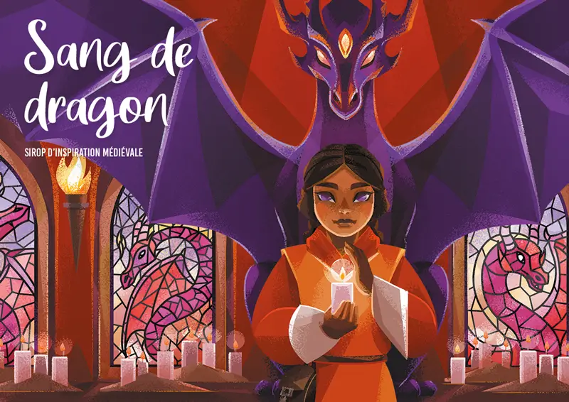 Notre Sang de dragon est un sirop élaboré avec du sucre, du jus de citron, des mûres, des framboises, du cassis et de l'eau de fleur d'oranger.