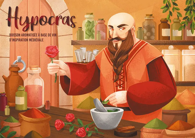 L'Hypocras est une macération de vin rouge avec du miel, des agrumes, de la cannelle et des épices.